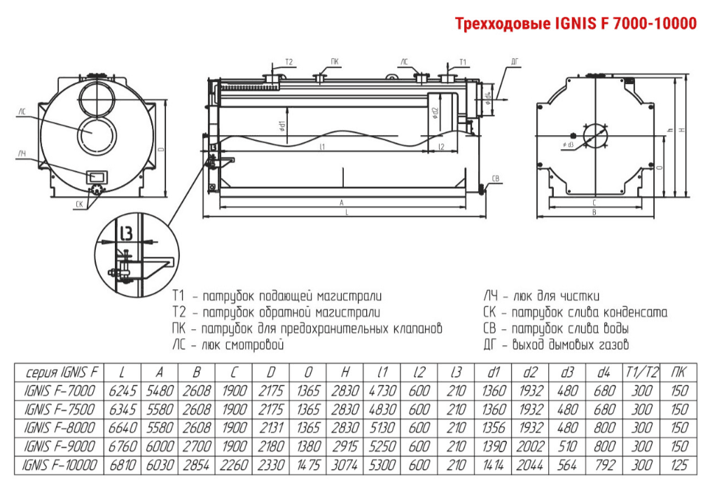 Технические характеристики водогрейного трёхходового котла ARCUS IGNIS F-7000