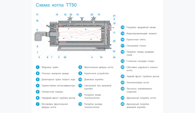• Водогрейные котлы ТЕРМОТЕХНИК ТТ50 разработаны в соответствии высочайшими международными нормами техники безопасности.